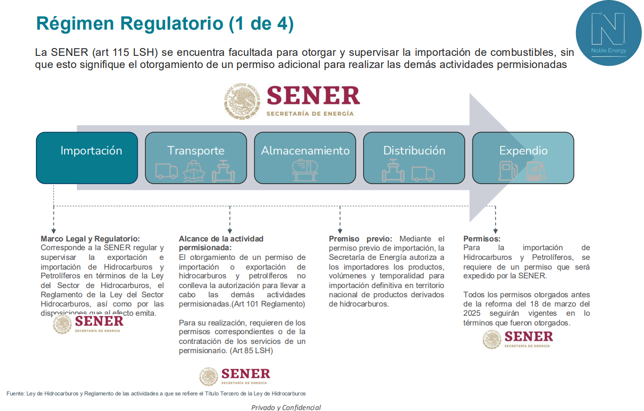 Cada órgano regulador establece las directrices, lineamientos y normas que deben cumplirse en materia de importación, transporte, almacenamiento, distribución y expendio de petrolíferos.